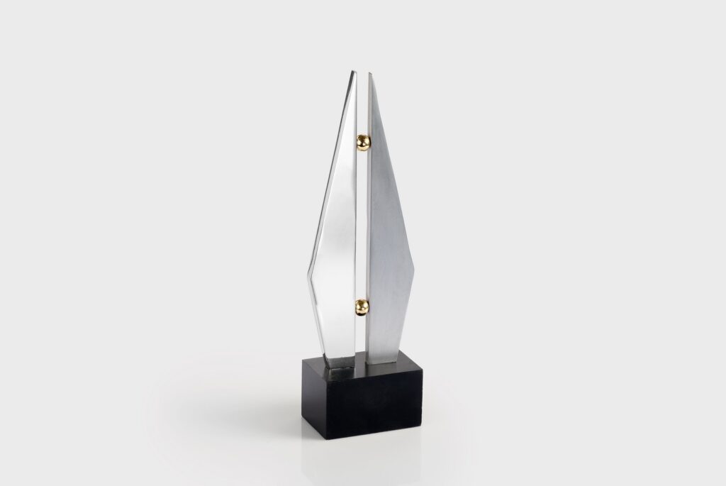 Ισορροπία των δύο αντιθέτων – Γλυπτό από αλουμίνιο με μπρούτζινες λεπτομέρειες και ξύλινη βάση (8,5x5x6cm)